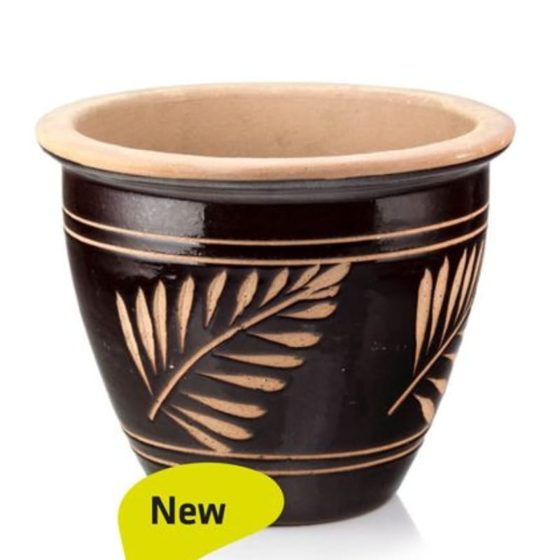 Brązowa donica w listki ceramiczna ogrodowa 37 cm Polnix Glazed 79.306