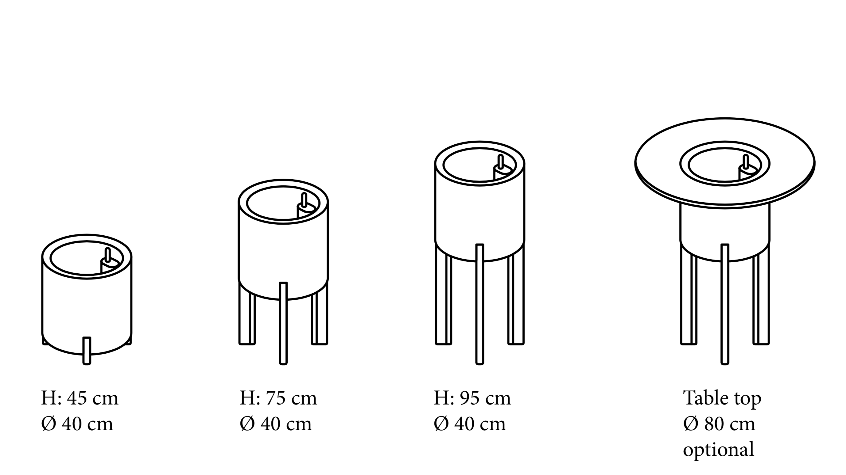 ✅ wymienne nóżki w różnych kolorach, dzięki którym wysokość donicy będzie wynosiła 45 cm, 75 cm lub 95 cm