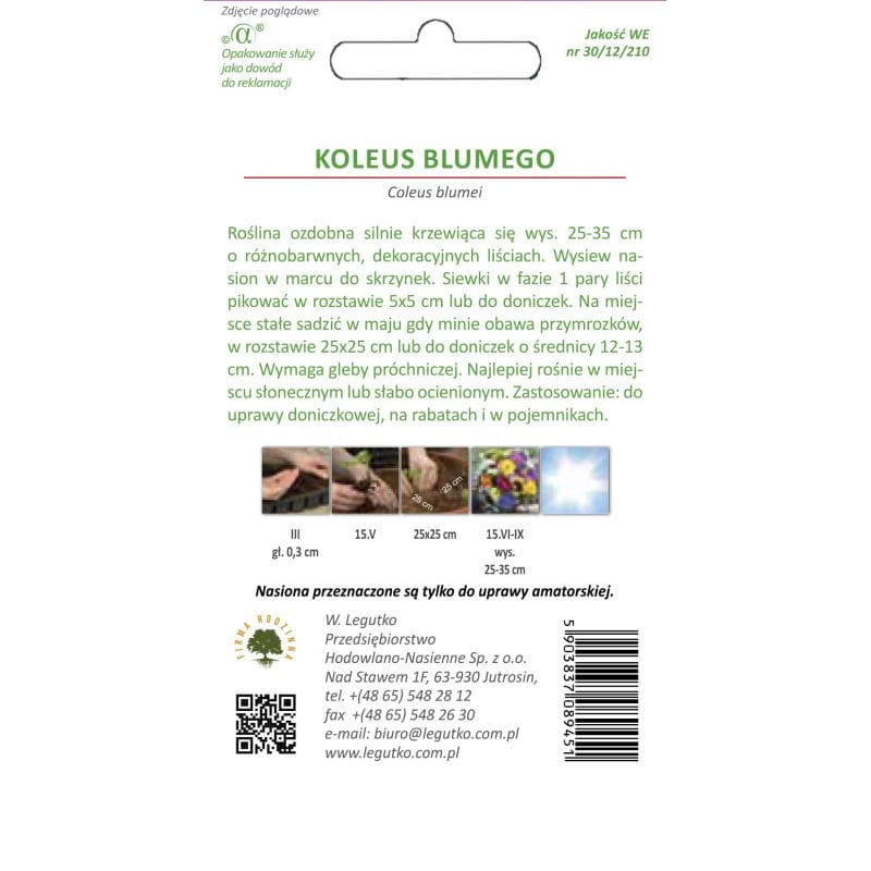 Koleus Blumego nasiona Legutko 0,1g >>> dekoracyjne liście