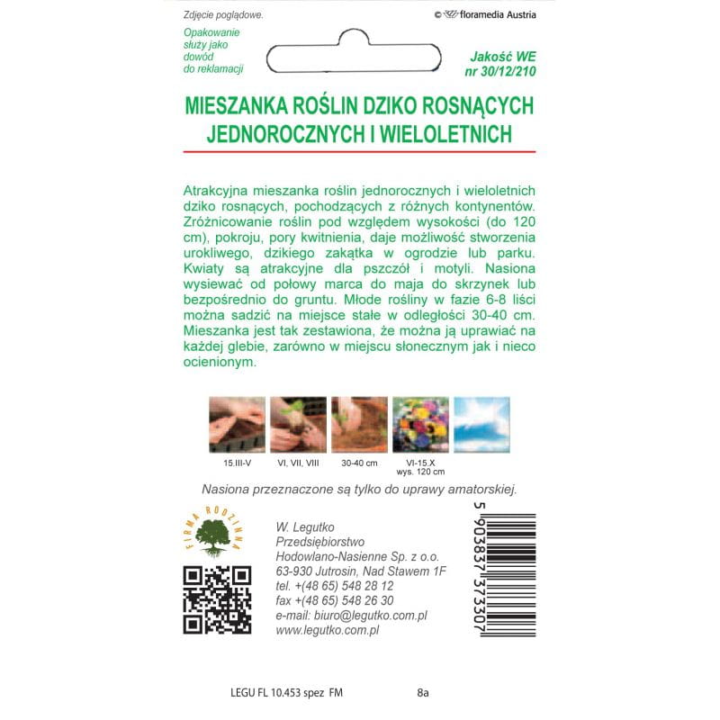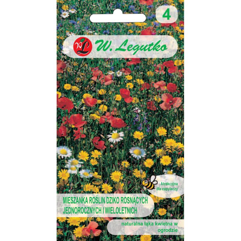 Mieszanka jednorocznych i wieloletnich roślin dziko rosnących - łąka kwietna nasiona Legutko 1g