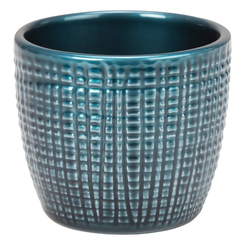 Niebieska osłonka na doniczkę 866 Brilliant Petrol 14 • połyskująca w kratkę • Scheurich Corteza