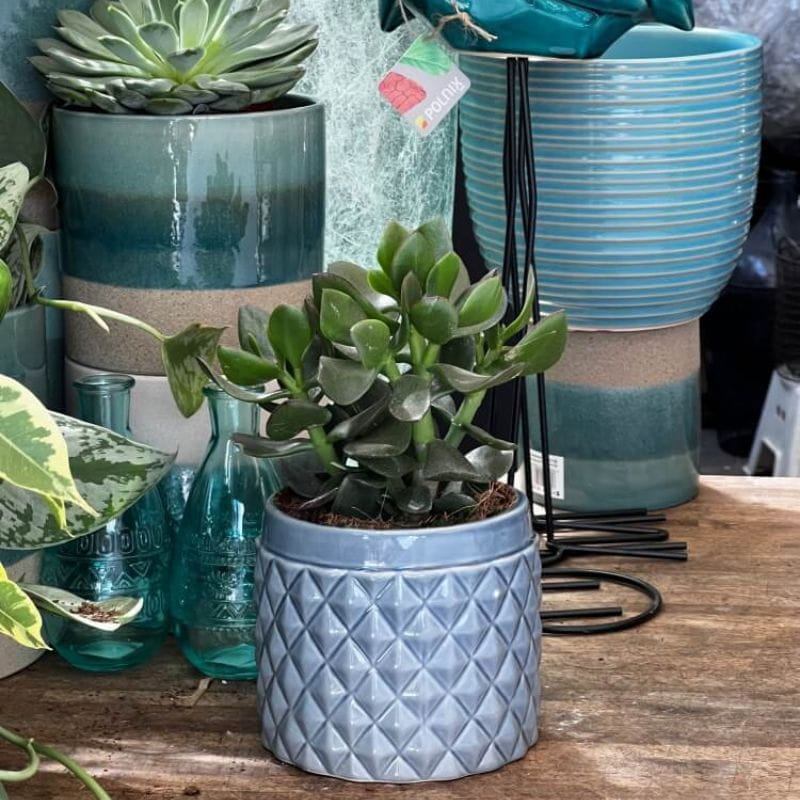 Niebieska osłonka na doniczkę ceramiczna 15 cm Polnix Vintage 05.284