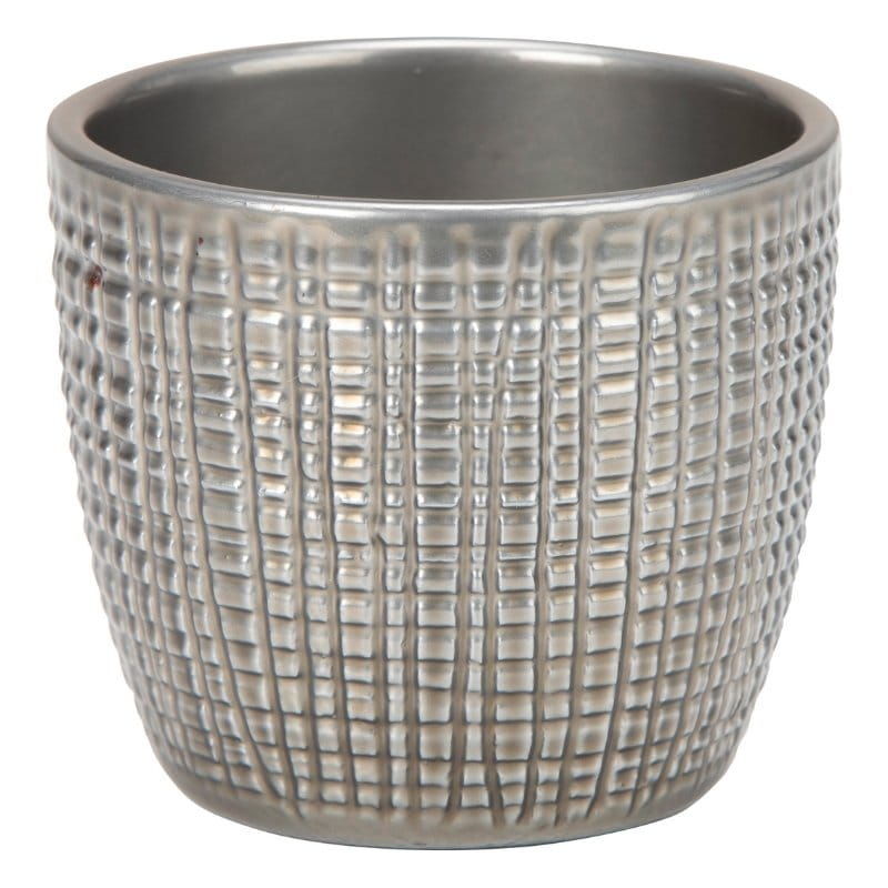 Srebrna osłonka na doniczkę 866 Brilliant Silver 16 • połyskująca w kratkę • Scheurich Corteza