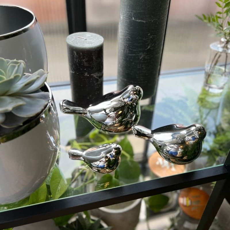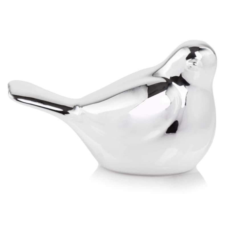 Srebrny ptaszek - figurka ceramiczna 7 x 4 x 4 cm