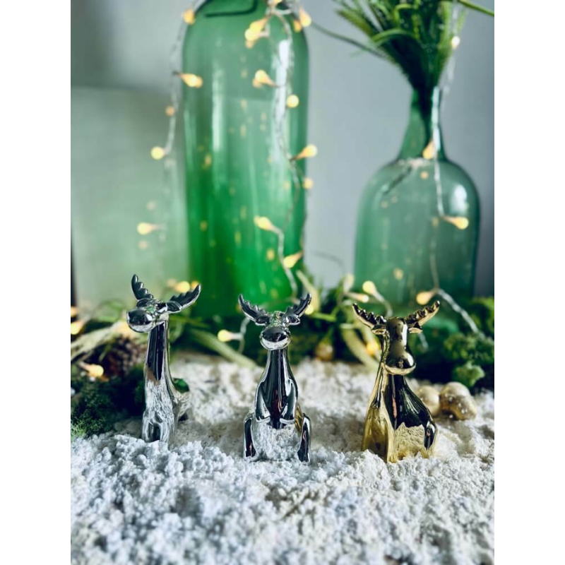 Srebrny renifer 02.572 • świąteczna figurka ceramiczna 15 cm • dekoracja na Boże Narodzenie