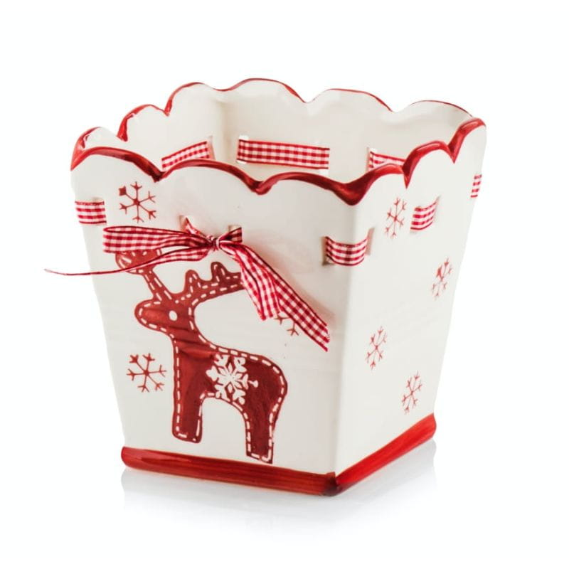 | Osłonki - nazwa modelu | dekoracje ceramiczne na Boże Narodzenie - doniczka z reniferem |