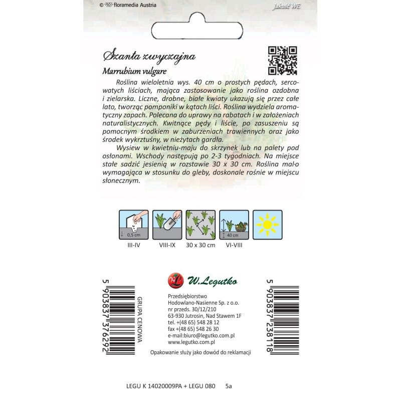 Szanta zwyczajna - nasiona Legutko 0,1g / Marrubium vulgare