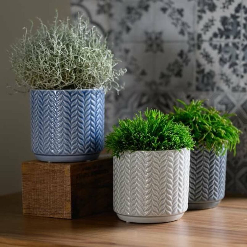 Szara osłonka na doniczkę w jodełkę 14 Vintage