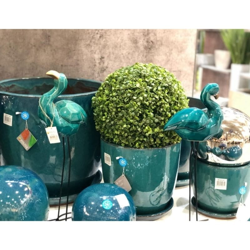 Turkusowa donica ceramiczna ogrodowa z podstawką 23 cm Polnix Barcelona 28.033