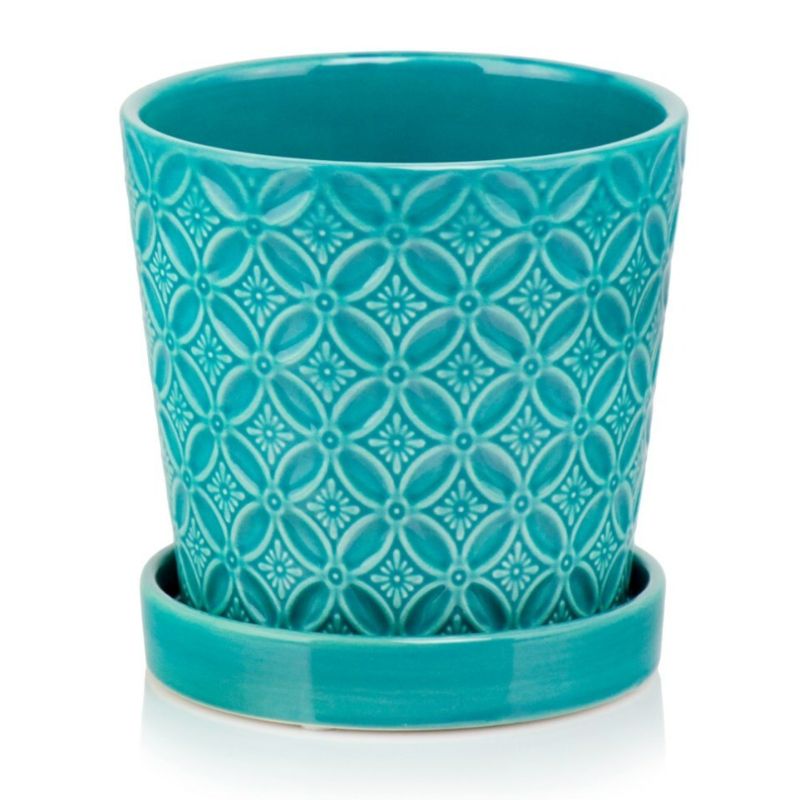 Turkusowa doniczka ceramiczna z podstawką 15 Polnix 15.016