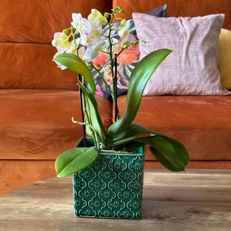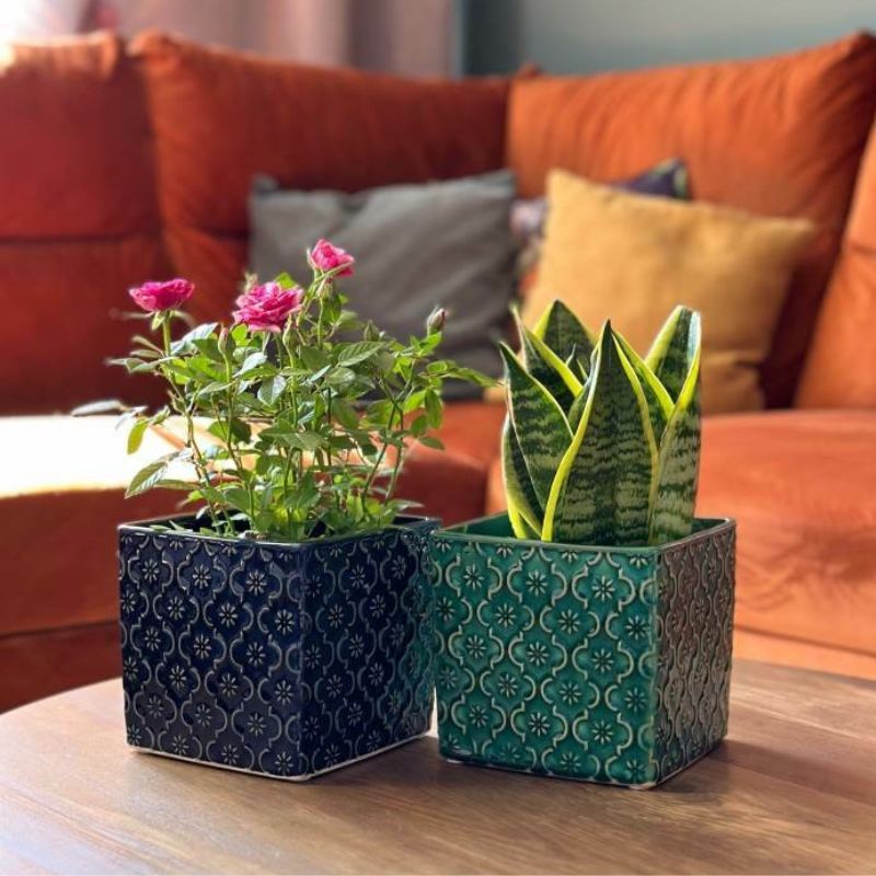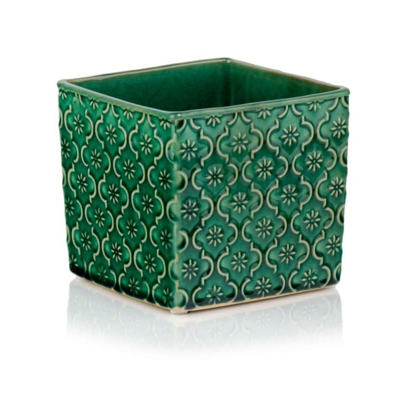 Turkusowa kwadratowa osłonka na doniczkę Polnix ceramiczna Vintage 14 ornament 07.129