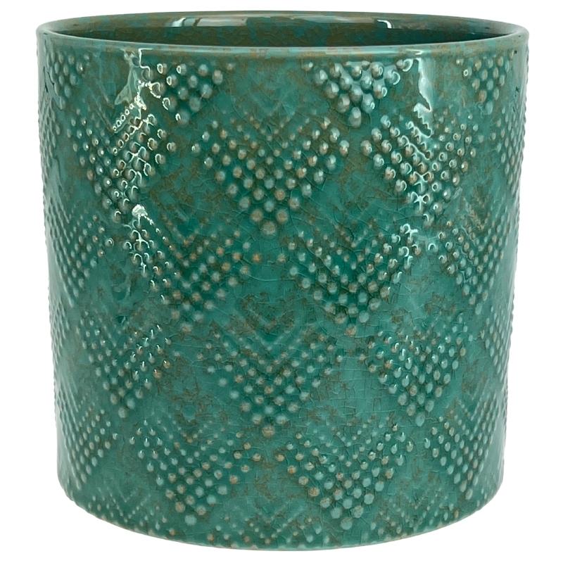 Turkusowa osłonka na doniczkę walec 13 szkliwiona Polnix Vintage kropelki