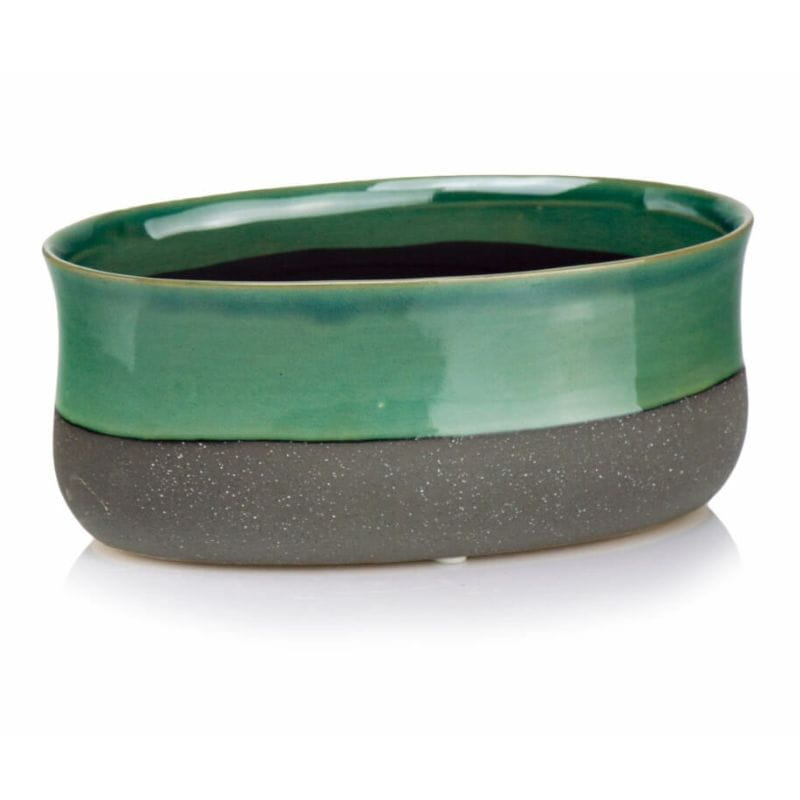 ✅ na górze szkliwo w kolorze turkusowym, na dole ceramika wypalona, lecz nie poddana szkliwieniu