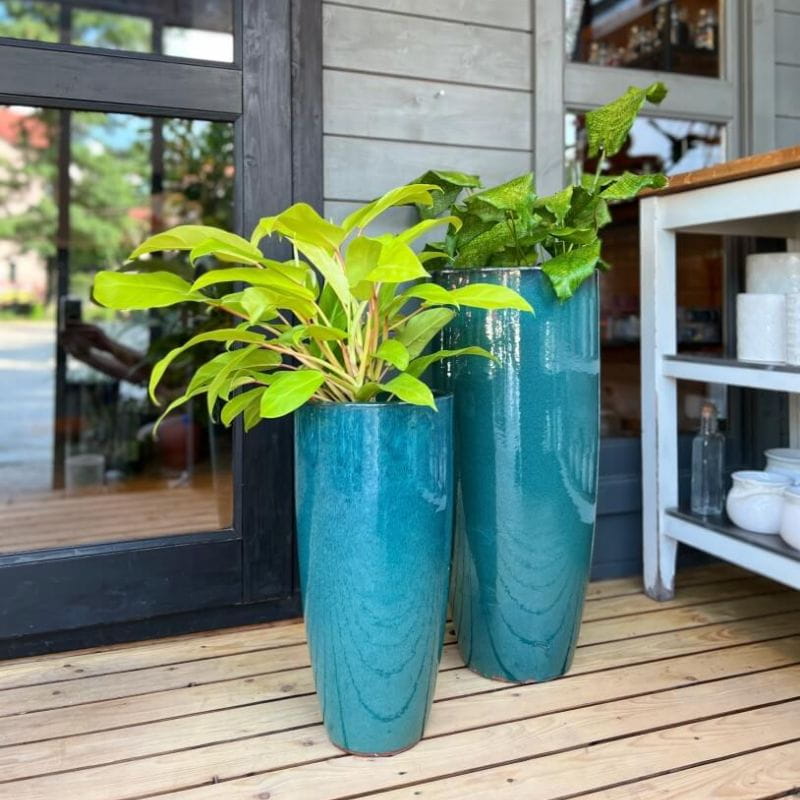 Wysoka turkusowa donica ceramiczna cygaro 28.035 Polnix Glazed 70 cm
