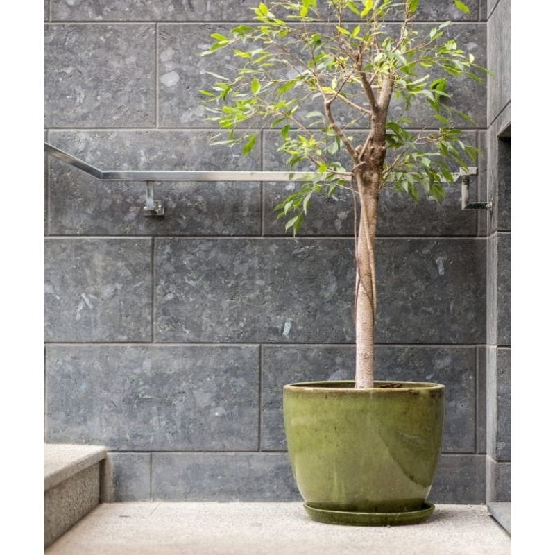 Zielona donica ceramiczna z podstawką mrozoodporna 41 cm Polnix Barcelona