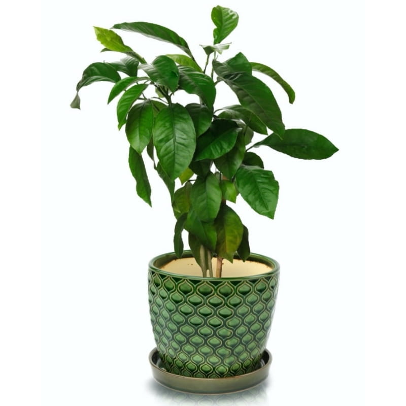 Zielona doniczka ceramiczna z podstawką