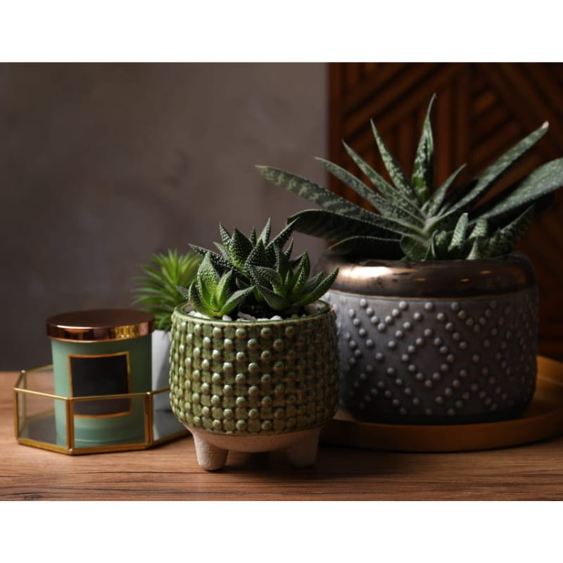 Zielona osłonka na doniczkę na nóżkach Polnix Vintage