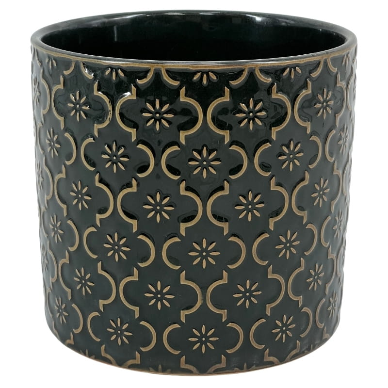 Zielona doniczka / osłonka Polnix Vintage w ornamenty występuje w różnych rozmiarach: