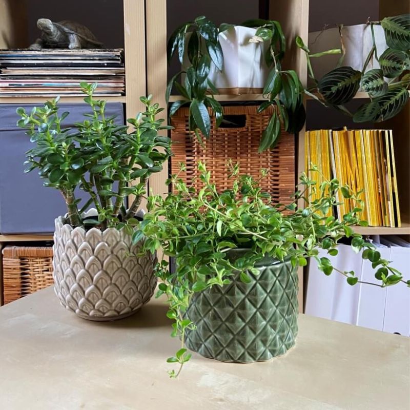 Zielona osłonka na doniczkę w nietuzinkowe wzory 15 Vintage
